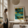 Ten plakat inspirowany Markiem Rothko pokazuje, jak kolor buduje nastrój. Złocistożółty jest główną tonacją, uzupełnioną chłodniejszymi i ciemnymi akcentami, co tworzy kompozycję intensywną, ale harmonijną i kojącą.