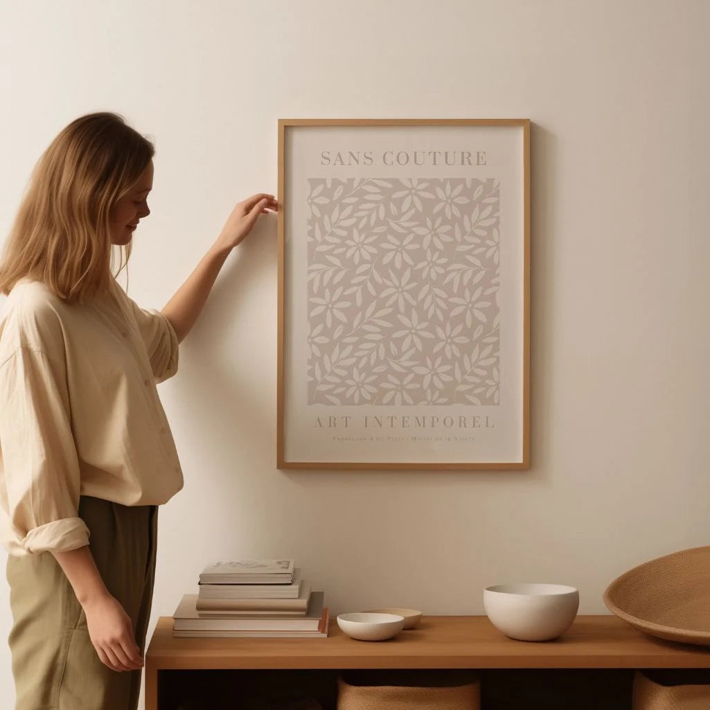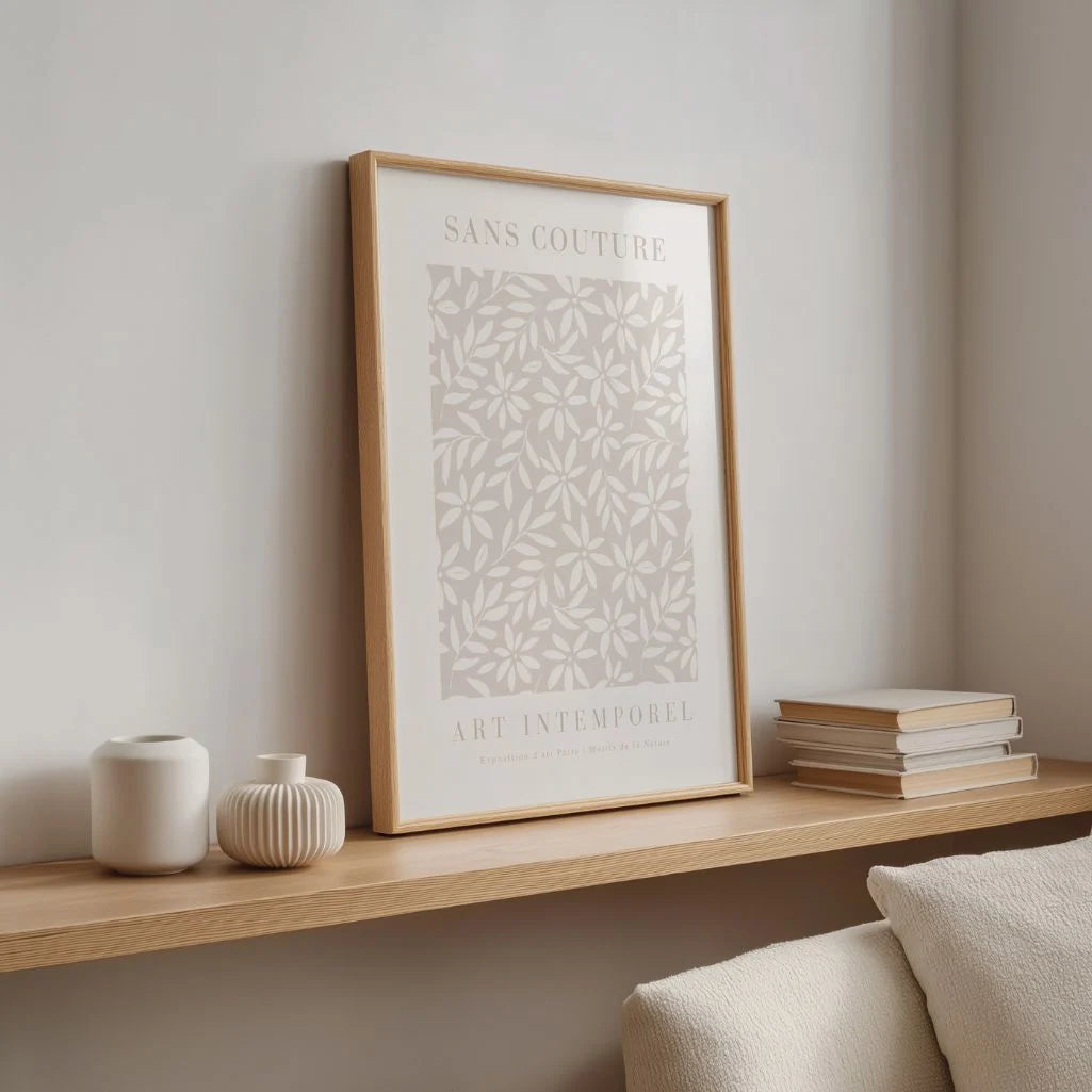Plakat Kwiatowy Sans Couture to elegancka, minimalistyczna kompozycja inspirowana francuską estetyką i sztuką dekoracyjną. Beżowy wzór pełen delikatnych kwiatów i liści sztucznej harmonijnej, subtelną dekorację, głęboko do wnętrz w stylu modern classic, japandi, skandynawskim oraz minimalistycznym. Dziesięć plakatów dodanych lekkości, naturalności i wyrafinowanego charakteru — doskonale sprawdziło się w sklepie, sypialni, czy holu.