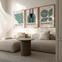 Chłodna paleta zieleni i szałwii, zestawiona z kremowym tłem i czernią, nadaje plakatom nowoczesny, architektoniczny charakter. Motywy segmentów i podziałów nawiązują do modernistycznych zasad Bauhausu, których forma wynika z konstrukcji i zgodności.