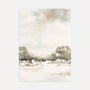 Minimalistyczny plakat akwarelowy z delikatnym pejzażem w naturalnych beżach i szarościach. Subtelna linia drzewna na horyzoncie, miękka rozmycia i duża ilość jasnej przestrzeni swobodnej kompozycji, która wprowadza do wnętrza lekkość i harmonię. Ten styl pasuje do stylu skandynawskiego, japandi, minimalistycznego oraz wnętrz w estetyce „natural”.