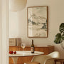 Nastrojowy plakat akwarelowy z górskim krajobrazem w stonowanych beżach i szarościach. Delikatne przejścia tonalne, lekkie mgła i miękkie kontury szczytów właściwej spokojnej kompozycji, która wnosi do wnętrza harmonię i przestrzeń. To idealna dekoracja do kuchni skandynawskich, japandi, oszczędnych oraz naturalnych — szczególnie tam, gdzie znajdują się subtelne klimaty i bliskość natury.