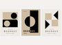 Plakaty Bauhaus – Zestaw 3 sztuki „Rytm Kontrastu Weimar” to kolekcja oparta na między jasnym beżem a głęboką czernią – dwa barwach fundamentalnych dla modernistycznego języka formy.