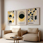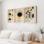 Plakaty Bauhaus – Zestaw 3 Sztuki „Dialog Form Weimar” do kolekcji inspirowanych idei wizualnych rozmów pomiędzy prostymi formami i kolorem – występującymi w społeczeństwie Bauhausu. Każdy plakat operuje innym zestawieniem kształtów, tworzącym, rytmem równoważnym.
