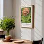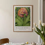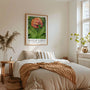 Wyjątkowy plakat przedstawiający dekoracyjny kwiat w zielono-pomarańczowej palecie barw, inspirowany charakterystycznym stylem Williama Morrisa. Bogate detale liści, płynne linie i pozostałości nietypowej kompozycji w duchu ruchu Arts & Crafts.